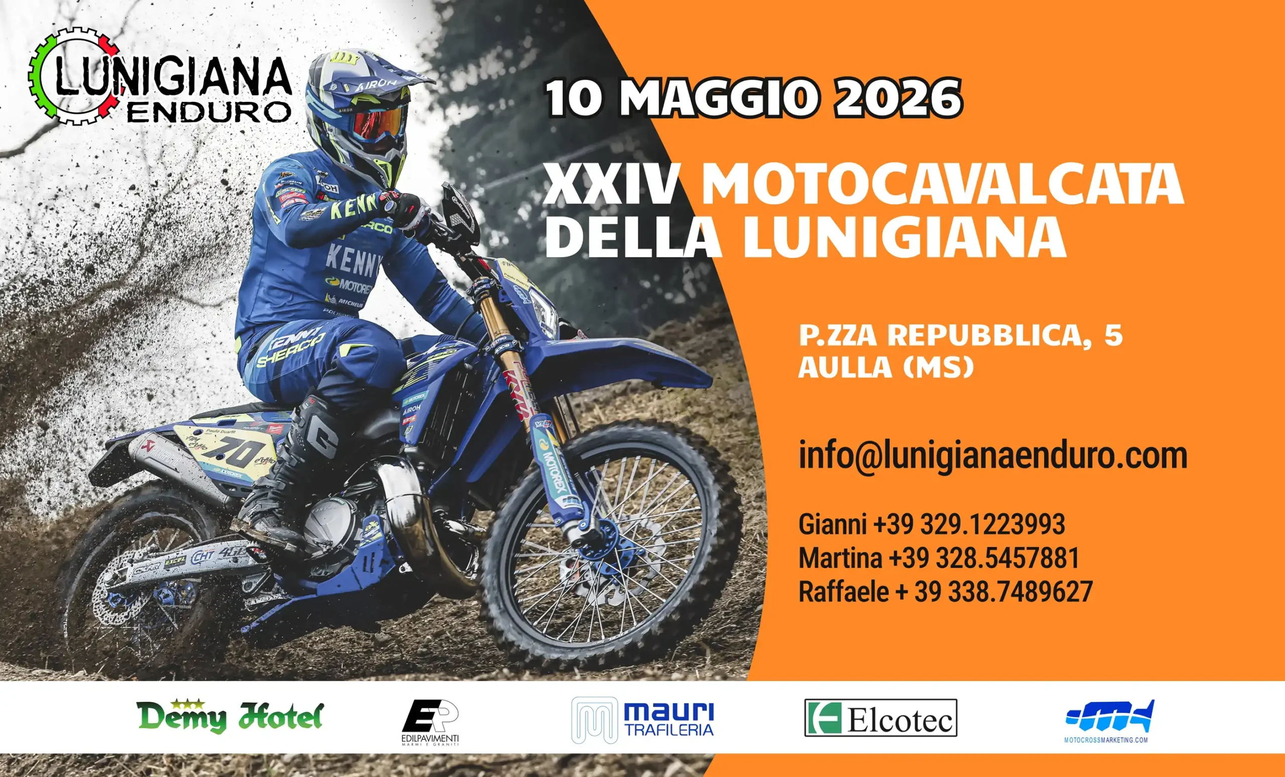 Nel cuore della Lunigiana, nel comune di Aulla si svolgerà il nostro appuntamento annuale, la famosissima XXIII Motocavalcata della Lunigiana, 110 km di: fuoristrada, fatica, passione e aggregazione.